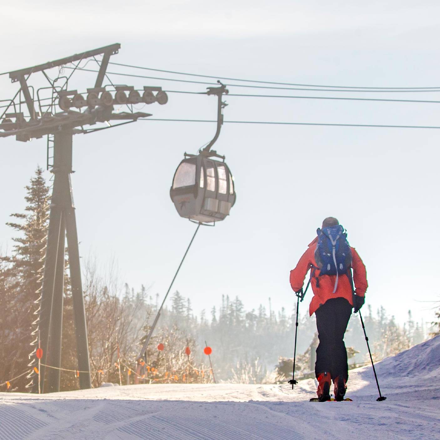 Only alpine touring skis, telemark skis, splitboards and snowshoes are allowed for uphill travel.